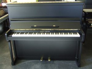 Pianino August Forster model 125, rok budowy 1953/Niemcy. Mechanika Flemming po przeglądzie i regulacji, dla stabilności stroju wymienione zostały wszystkie kołki stroikowe na nowe, struny basowe są też nowe, klawiatura średniej ciężkości, wymienione są też wszystkie białe nakładki klawiszy, mebel całkowicie odnowiony i wykończony w czarnym półmacie. Wysokość 125 cm, szerokość 147 cm, głębokość 61 cm.