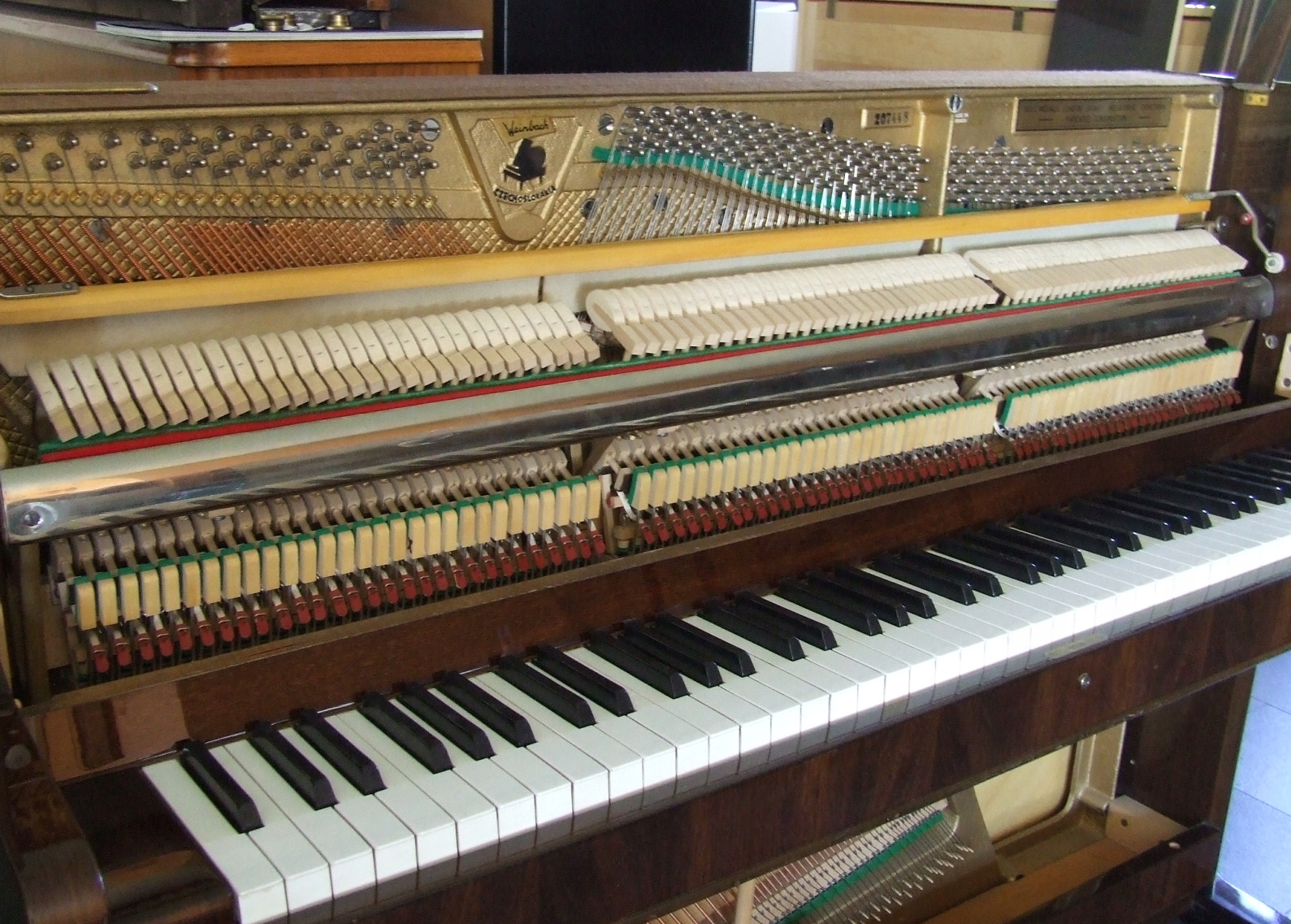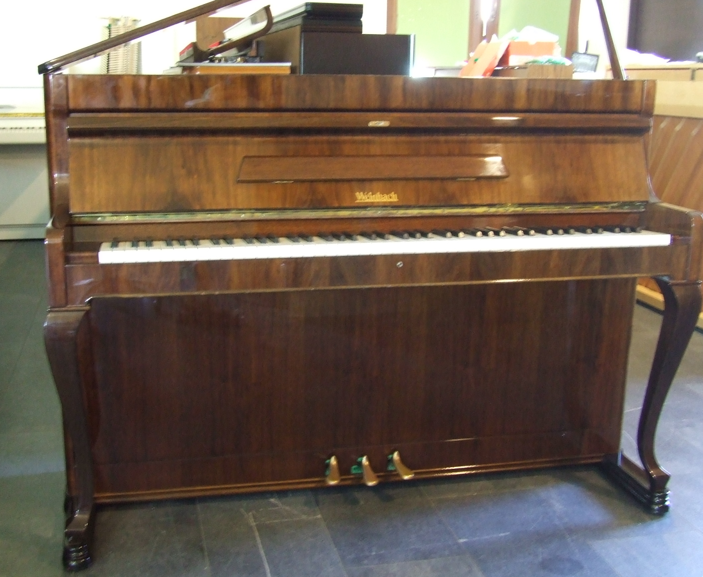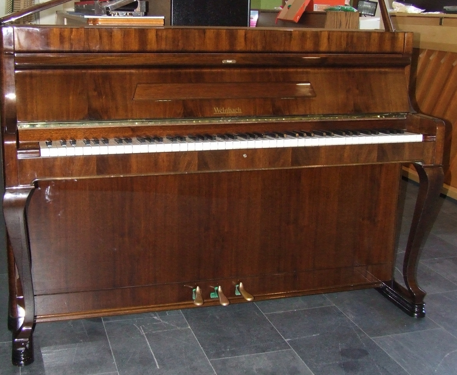 Przedmiotem sprzedaży jest pianino Weinbach, rok budowy 1981/Czechosłowacja. Mechanizm w oryginale po przeglądzie i regulacji, kołki stroikowe trzymają strój dobrze, klawiatura średniej ciężkości. W instrumencie tym zainstalowany jest również moderator. Wysokość 104 cm, szerokość 145 cm, głębokość 54 cm. Praktycznie wszystkie używane pianina i fortepiany oprócz strojenia wymagają również gruntownej regulacji i intonacji. Strojenie trwa ok 2 godziny a regulacja z intonacją zajmuje specjaliście od 8 do 20 godzin pracy, nawet jeśli instrument był niewiele używany. Jest to prawdziwie „Benedyktyńska” praca, którą przed wystawieniem każdego instrumentu na sprzedaż wykonujemy. Pełna regulacja w używanym pianinie oznacza między innymi: Wykonanie niezbędnych dla prawidłowej pracy mechanizmu napraw, regulacja pilotów, rozstawienie młoteczków, profilowanie młoteczków, likwidacja luzów klawiatury, układanie klawiatury pod linijkę, regulacja uchylenia (głębokość gry), regulacja wyzwolenia (wymyku), regulacja chwytników, regulacja tłumików, regulacja i wyciszenie pedalizacji, intonacja, wyciąganie stroju do A1/440 Hz. Należy też przy tym wspomnieć, że pianina i fortepiany powinny być przetrzymywane w pomieszczeniach ze stałą temperaturą 17 – 22 stopnie Celsjusza i wilgotnością powietrza 40 – 60 %. Podana cena jest ceną brutto. Zakupiony w naszej firmie instrument można wymienić na pianino lub fortepian wyższej klasy.