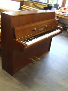Pianino Schiedmayer, rok budowy 1971 Stuttgart/Niemcy. Mechanika Renner po przeglądzie i regulacji (wszystko w super stanie), kołki stroikowe trzymają strój mocno, klawiatura średniej ciężkości, mebel całkowicie odnowiony. Wysokość 110 cm, szerokość 142 cm, głębokość 53 cm.