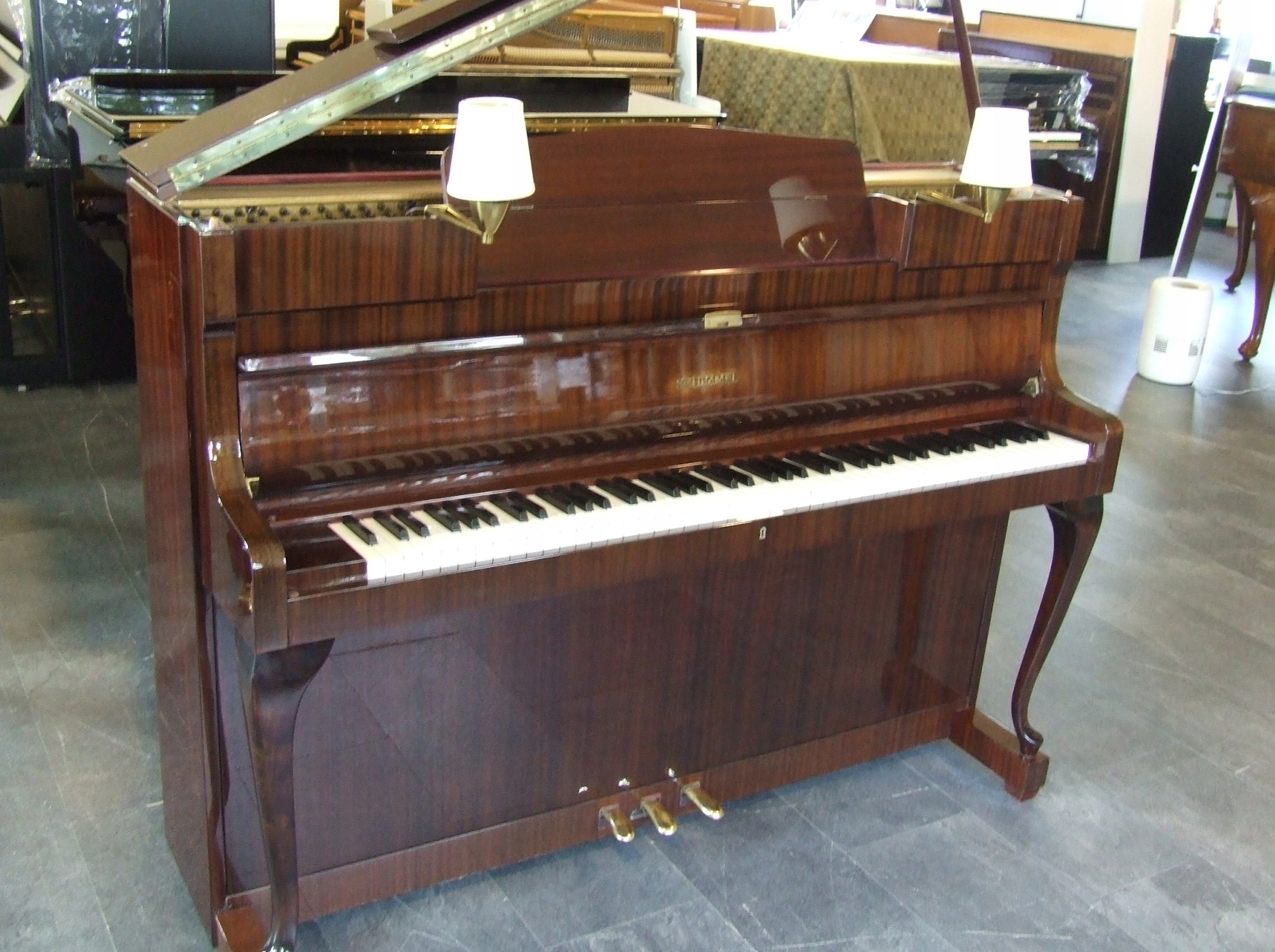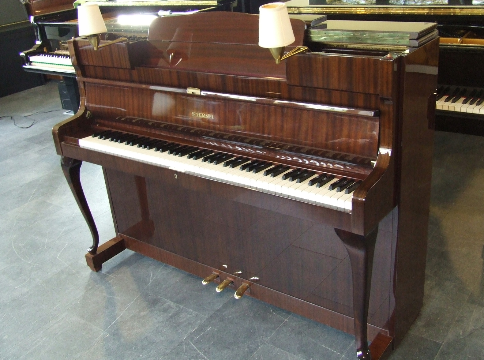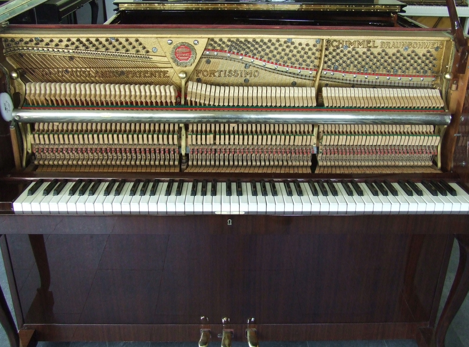 Przedmiotem sprzedaży jest pianino Wilhelm Schimmel, rok budowy 1961 Braunschweig/Niemcy. Mechanizm niemieckiej produkcji firmy Renner w oryginale po przeglądzie i regulacji, klawiatura średniej ciężkości. Mebel po drobnym liftingu wygląda bardzo okazale. W instrumencie tym zainstalowany jest moderator. Wysokość 109 cm, szerokość 145 cm, głębokość 54 cm. Zapraszamy do jego wypróbowania. Praktycznie wszystkie używane pianina i fortepiany oprócz strojenia wymagają również gruntownej regulacji i intonacji. Strojenie trwa ok 2 godziny a regulacja z intonacją zajmuje specjaliście od 8 do 20 godzin pracy, nawet jeśli instrument był niewiele używany. Jest to prawdziwie „Benedyktyńska” praca, którą przed wystawieniem każdego instrumentu na sprzedaż wykonujemy. Pełna regulacja w używanym pianinie oznacza między innymi: Wykonanie niezbędnych dla prawidłowej pracy mechanizmu napraw, regulacja pilotów, rozstawienie młoteczków, profilowanie młoteczków, likwidacja luzów klawiatury, układanie klawiatury pod linijkę, regulacja uchylenia (głębokość gry), regulacja wyzwolenia (wymyku), regulacja chwytników, regulacja tłumików, regulacja i wyciszenie pedalizacji, intonacja, wyciąganie stroju do A1/440 Hz. Należy też przy tym wspomnieć, że pianina i fortepiany powinny być przetrzymywane w pomieszczeniach ze stałą temperaturą 17 – 22 stopnie Celsjusza i wilgotnością powietrza 40 – 60 %. Podana cena jest ceną brutto. Zakupiony w naszej firmie instrument można wymienić na pianino lub fortepian wyższej klasy.